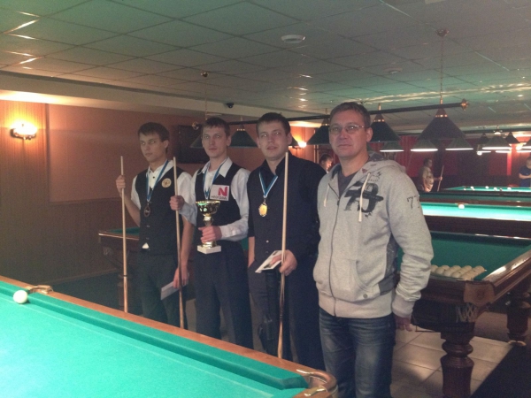 На обоих столах до последнего шара трудно было предугадать победителя, но всем известно, что в бильярде ничьей не бывает. Обе встречи закончились почти одновременно со счетом 5:4. Первое место – Мирзоев Али, второе – Сафкулиев Руслан, третье Гусельников Святослав.