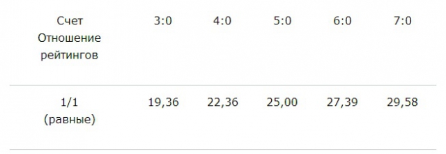 4. При расчете рейтинга принимается условие, при котором победа не должна приводить к уменьшению рейтинга спортсмена, а поражение - к его повышению.