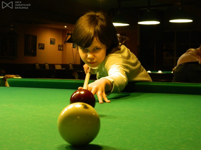 Самой юной участницей стала 13-летняя Настя Якунина — очень целеустремленная девочка, воспитанница Дмитрия Филимонова, у которой все победы еще впереди. Насте мы подарили 6 часов игры на бильярде от клуба «РАДО» и сертификат на 500 р от магазина «ИНТЕРСПОРТ».