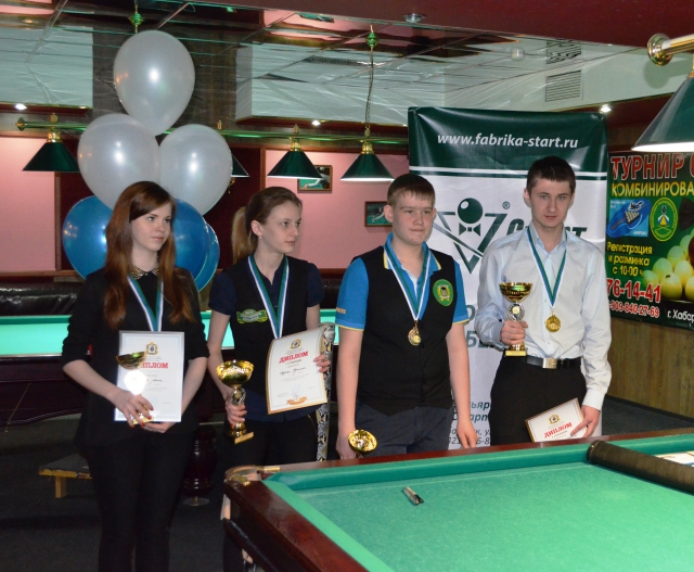 С 29 по 31 марта в Хабаровске в бильярдном клубе "Вираж" состоялось открытое первенство края среди юношей и девушек до 18 лет. 7 девушек и 16 юношей боролись за звание сильнейшего в Хабаровском крае. Игры длились два дня: в субботу и в воскресенье.