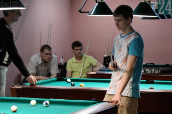 С каждым разом в бильярдном клубе "Стрелец" собирается все больше пулистов. Приятная тенденция, однако. Сегодня, например, это славное бильярдное заведение на Обводном канале посетило 25 любителей погонять разноцветные и полосатые шары в 45-м турнире ЛЛБ. Играли в "десятку". Состав участников исключительный: один "маэстро" и четыре "чемпиона".С его участием в первом раунде борьбы случилось прелюбопытное противостояние с одним из лучших в Петербурге специалистов по пирамиде Евгением Прусаком. В пул в рамках ЛЛБ он играл всего однажды - около года назад. Борьба получилась нешуточная, Семенов вырвал победу лишь в контровой партии при том, что разница в гандикапах была минимальной. Семенову довелось сыграть еще две "контры". Сначала в полуфинале, где он давал фору в одну партию, а затем в финале, где уже соперник вынужден был догонять Глеба. И оба раза наш герой выходил победителем. Одним из самых доезжающих пулистов среди "профи" продолжает оставаться Сергей Демьянов, который и в такой великолепной компании добрался до 3-го места, став лучшим из "двоечек".