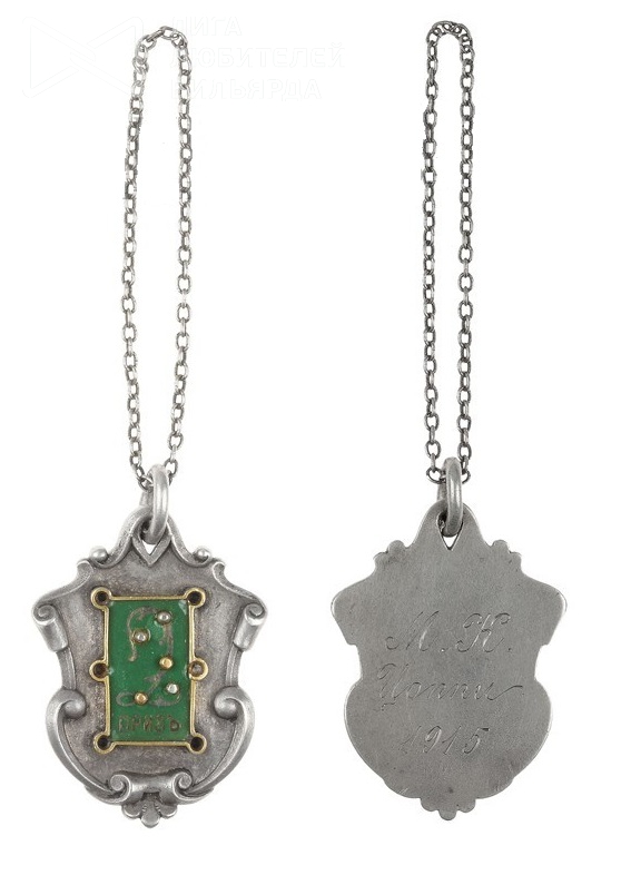 Жетон 2ой приз за игру в бильярд Российская империя, частная мастерская. Начало XX в. На оборотной стороне гравированная надпись М.К. Цоппи 1915.