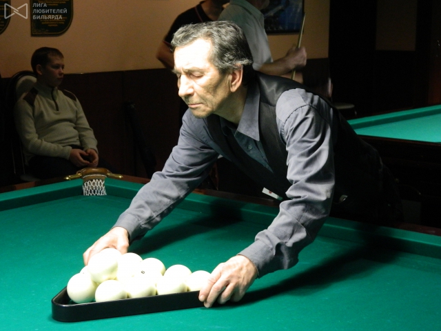Поворчав немножко из-за малого количества выделенных столов, сеньоры вступили в борьбу. На 13 пензяков пришлось 9 саранских сеньоров. Участники собрали 11000 рублей призового фонда, который распределялся на 3 места (1 место – 4500 р, 2 место – 3500 р, два 3 места – по 1500 р). Играли в комбинированную пирамиду по сетке 32х16.