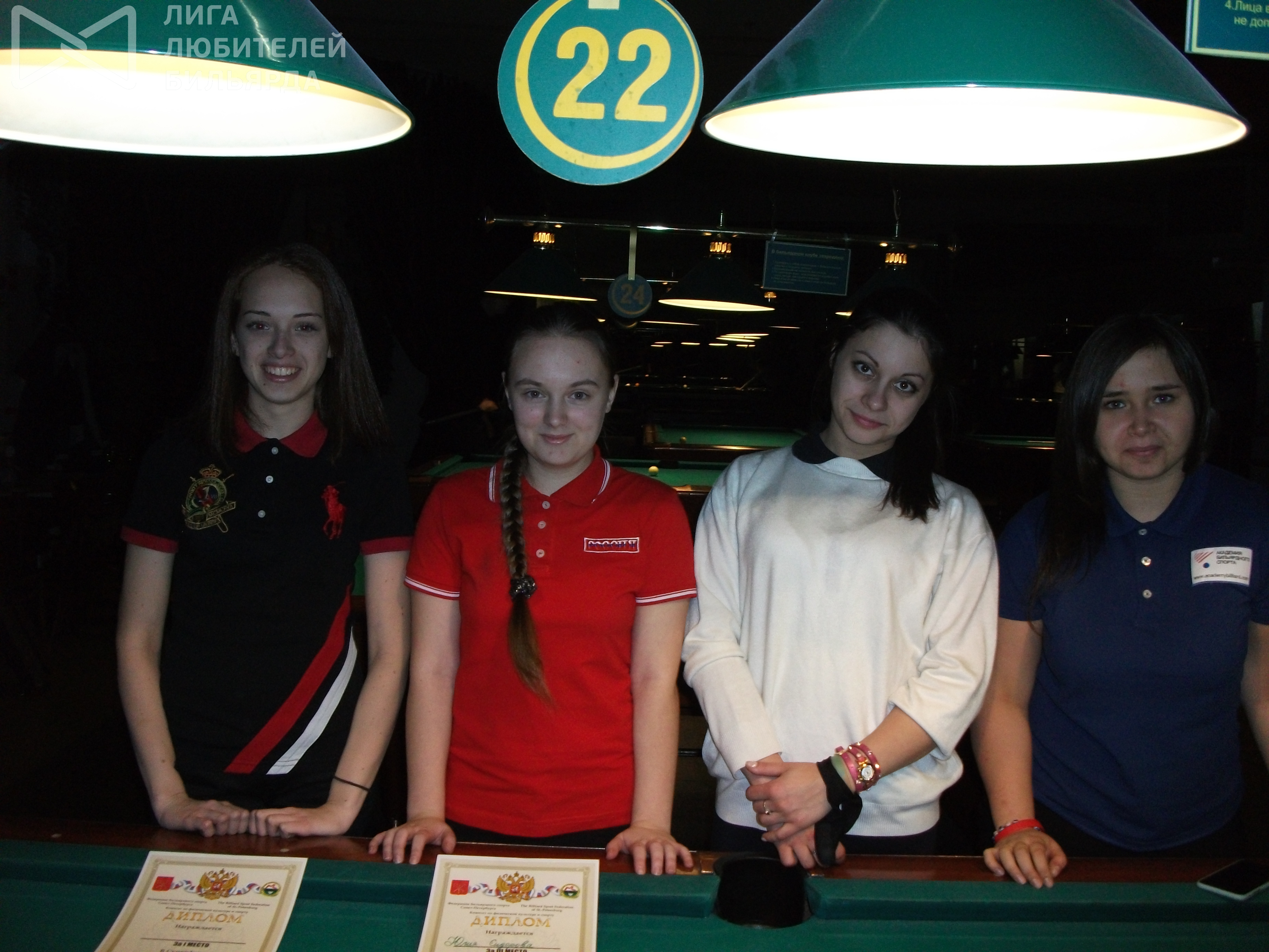 Суперфинал открытого кубка Санкт-Петербурга по пулу среди девушек 2014 21.12.2014 - 21:53 Автор: drizin Турнир: Суперфинал открытого кубка Санкт-Петербурга по пулу среди девушек 2014