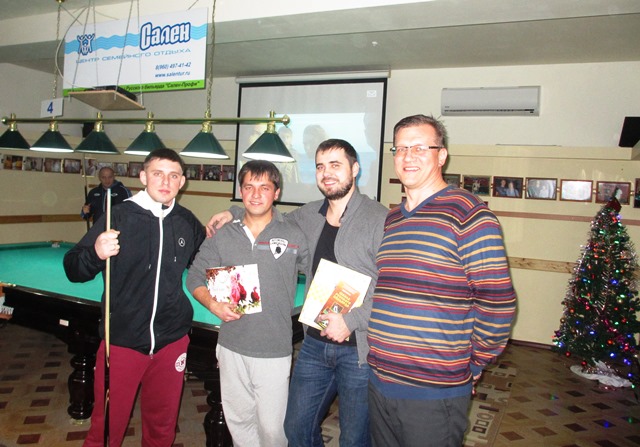 Цигельников Евгений обыграв в финале Редько Дениса, стал победителем финального тура Открытого первенства ШРБ Сален-Профи. 3 место заняли как и в прошлом году Крячун Александр - Славянск и Щуров Дмитрий - Анапа. Играли длинную американку до 30 шаров по правилам школы.