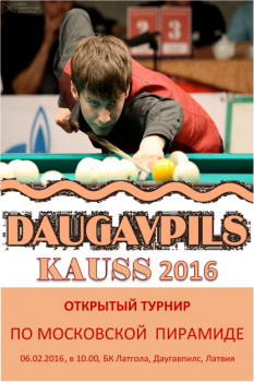 | 6 февраля в Даугавпилсе открытый турнир по московской пирамиде "Daugavpils Kauss 2016" |