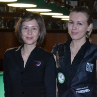 В 10.00. стартовали два женских полуфинала. Участницами первого из них стали Мария Голяк (Новосибирск) и Марина Муратова (она же Дементьева) из Иркутска. Исход поединка определился в «контре» при счёте 7-7. Победительницей полуфинала стала Мария Голяк, забившая непростой восьмой шар в среднюю лузу.