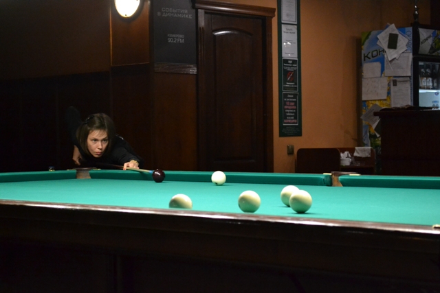 Не прошло и часа, как Юлия сумела выиграть первые две партии (8:0; 8:6). Третья же партия осталась за Марией (8:6). Четвёртую без борьбы опять берёт Трубникова (8:1). Счёт становится 3:1 в её пользу. В пятой партии инициативу захватила Мария Голяк,- на её полке красовались 5 забитых шаров, в то в то время как у Юлии был всего лишь один. Однако, по ходу партии, Юлия стала постепенно подравниваться, и в результате смогла догнать соперницу по шарам, а затем и вовсе выйти вперёд. В результате, партия завершилась со счётом 8:6 в пользу Юлии Трубниковой. Она вновь подтверждает своё высокое звание мастера ! Поздравляем!