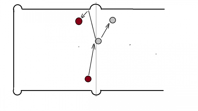 Так это ж тоже самое. Если центр шара до соударения был на левой стороне, а после соударения шар оказался на правой, то значит есть перекат. А вот если центр шара до соударения был на правой стороне, и там же оказался шар после соударения, то переката не было.