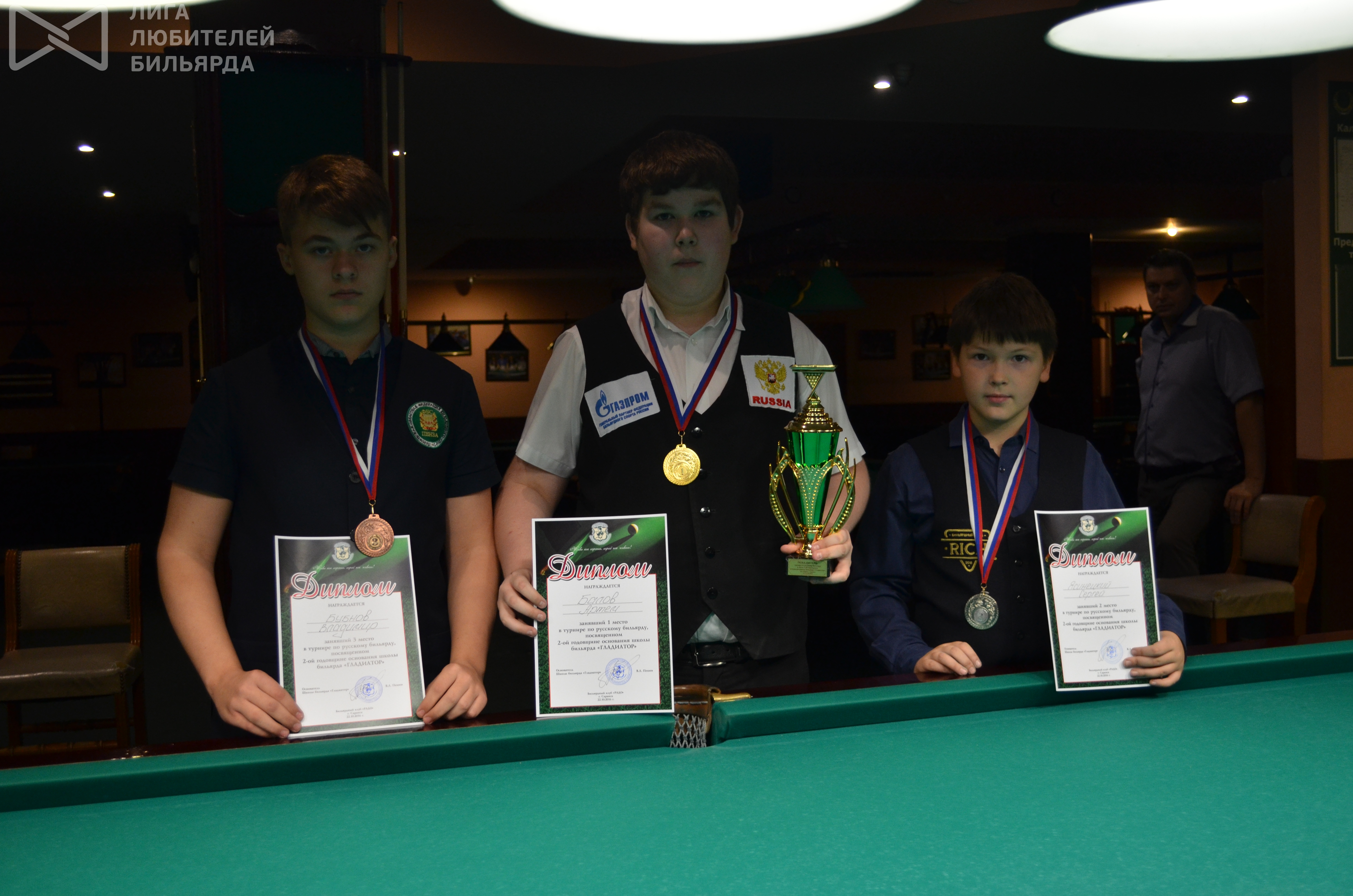 Саранск 2016. Турнир по пирамиде посвященный 2-ой годовщине основания школы бильярда «Гладиатор» 23.10.2016 - 15:43 Автор: Пешев Вадим Турнир: Саранск 2016. Турнир по пирамиде, посвященный 2-ой годовщине основания школы бильярда «Гладиатор»