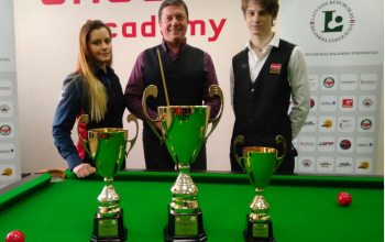 На фото: Анна Присяжнюк - победительница второго, рижского этапа Baltic Snooker League.