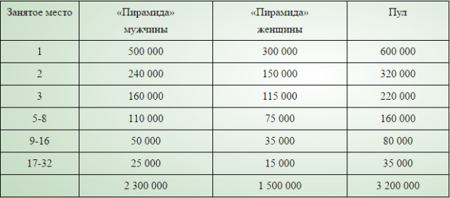 Как обычно, Кубок Кремля пройдет по свободной пирамиде среди женщин, по комбинированной и пулу-десятке среди мужчин.