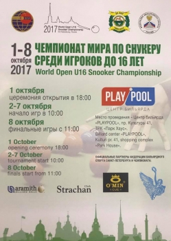 | В Санкт-Петербурге 2 октября стартует турнир под названием World Open Under-16 Snooker Championships. |