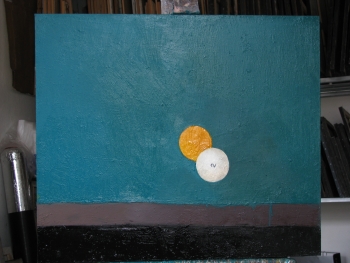 | Бильярд продолжает вдохновлять представителей творческой интеллигенции на создание своих бессмертных творений. Перед вами одна из выставочных картин с романтическим названием "Биток и Дуня". |