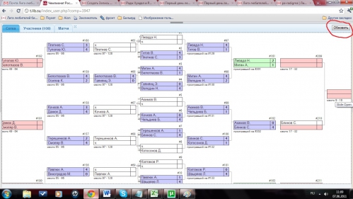 Здорово! Только у меня создается впечатление, что мы говорим о разных вещах. Никакой кнопки "Обновить" у меня нет. Никаких серых зон - тоже. И все вкладки (сетка, участники, матчи) я вижу вертикально, каждое в своей зоне, которые не раздвигаются. А смотрю в том же хроме.