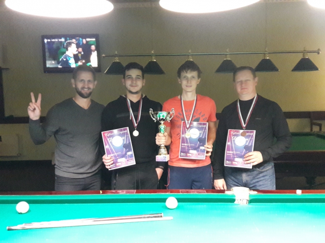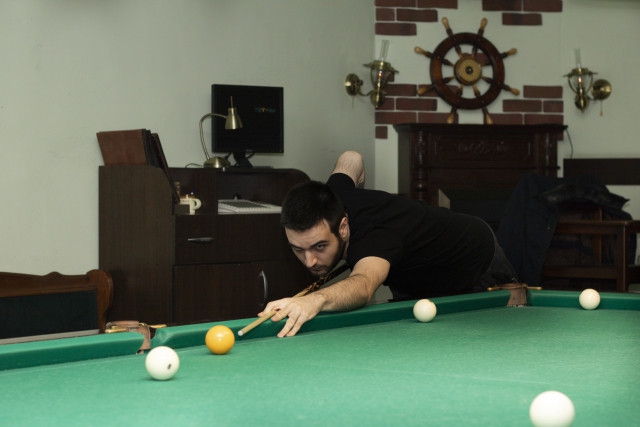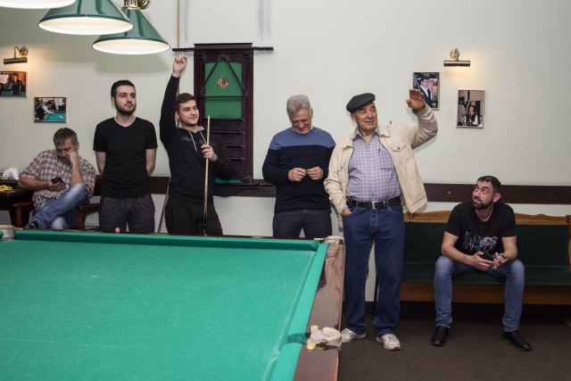 Знатоки, наверное сейчас задаются вопросом, а что же случилось с Микаелом? Наверное, это был просто вечер ученика Захарова Ильи - Константина Венглинского. Костя не потерял концентрацию после поражения в 3 круге от Лихоманенко (1:3), продолжал стараться в каждом подходе. Кстати, именно он выбил из розыгрыша самого возрастного участника, хорошо известного в бильярдном сообществе, кийёвых дел мастера Половьянова Станислава Михайловича (2:1).