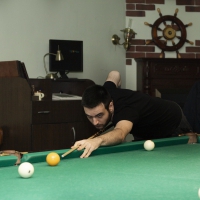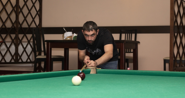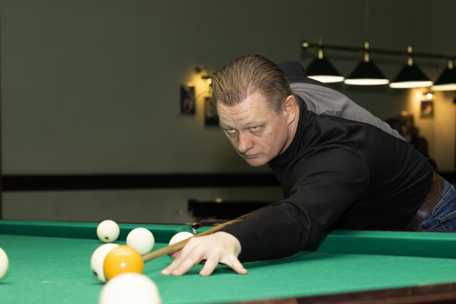 После 5 лет перерыва нашего гостя вновь "потянуло". Денис достаточно легко добрался в 1/2 финала орудуя общаковым киём и выдал нам классный матч против Евгения Лихоманенко. Уступая 0-2 по партиям, довёл дело до 5 партии, но не дожал. Женя сделал серию в 6 шаров и тем самым практически решил исход встречи. Удалось взять небольшое интервью у нашего нового участника.