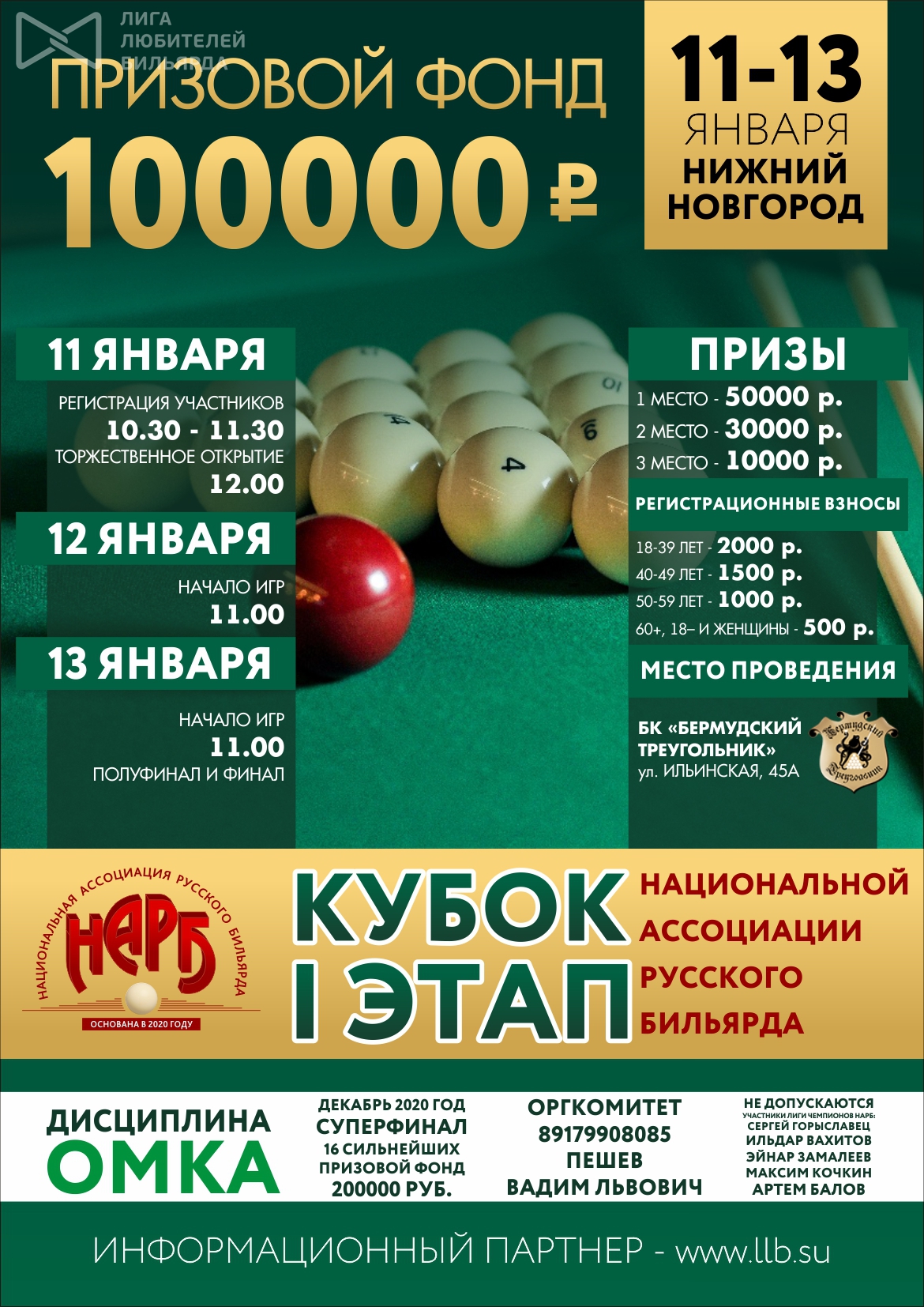 1-й этап Кубка Национальной ассоциации русского бильярда 2020 18.12.2019 - 16:45 Автор: Пешев Вадим Турнир: Нижний Новгород 2020. 1-й этап кубка НАРБ по пирамиде