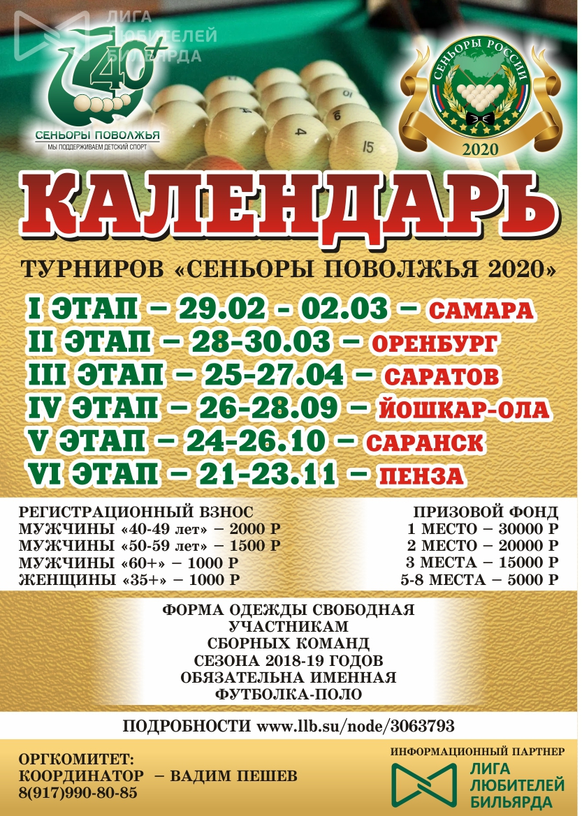 Самара 2020. 1-й этап серии открытых турниров «Сеньоры Поволжья 2020» по пирамиде 27.02.2020 - 15:55 Автор: Пешев Вадим Турнир: Самара 2020. 1-й этап серии открытых турниров «Сеньоры Поволжья 2020» по пирамиде