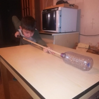 6. Упражнение с бутылкой на точность удара. В качестве цели используется горлышко пустой бутылки, лежащей на условно игровой поверхности. Задача: ударным движением попасть кием в горлышко, не задев стенок.