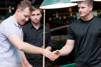 В заключении - маленькое лирическое отступление. Во-первых, хочу еще раз привлечь внимание административных органов, предприятий и организаций города, что турниры по бильярду - интересный и малобюджетный вариант проведения корпоративных спортивно-отдыхающих и массовых мероприятий. И ЛЛБ готова помочь вам подготовить и провести их "под ключ". Во-вторых, парные турниры по пулу - это и способ закрепить свои игровые навыки, и прекрасный тренинг из серии team building, и мощный выброс адреналина. Мобильно, увлекательно и зрелищно! (Для нас с Виктором Пшеничниковым, традиционно играющим в пирамиду, конечно же, такие турниры достаточно экзотичны, но удовольствия мы получили не меньше, чем от прошедшего накануне стартового матча командного клубного Первенства).