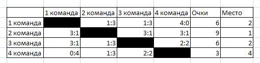 При предлагаемой мной схеме каждая партия может повлиять на распределение команд по местам при условии равенства побед.