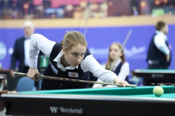 Семикратная обладательница Кубка Диана Миронова уверенно начала день, быстро выиграв в четвертьфинале у Анастасии Зверинцевой – 5:1. А через час после начала полуфинальной встречи с Марией Карповой Диана уже была практически в финале. 4:1 в пользу Мироновой – казалось бы, о чем можно говорить? Но тут началось невероятное. Карпова дает партию с кия – 2:4. Затем кошмар со штрафами вернулся к Диане. Она фолит, забив всего один шар в открытой позиции. Мария безупречна – 7 с кия и 3:4. Восьмая партия: разбой Мироновой, восемь с кия от Карповой – 4:4! Контра. Разбой Карповой, промах. Шанс для Дианы – она не забивает. Мария кладет 6 с кия. Диана счет сравнивает – 6:6, ошибается. Карпова выходит вперед, не забивает несложный матчбол, Миронова снова уравнивает – 7:7. Серия отыгрышей, Диана ставит сопернице не самый простой чужой в правый угол, но Мария великолепно справляется! 8:7 – Мария Карпова — «женский голос бильярда» выходит в финал! Добавлю, что счет личных встреч (по крайней мере, зарегистрированных) стал теперь 17:2 в пользу Мироновой.