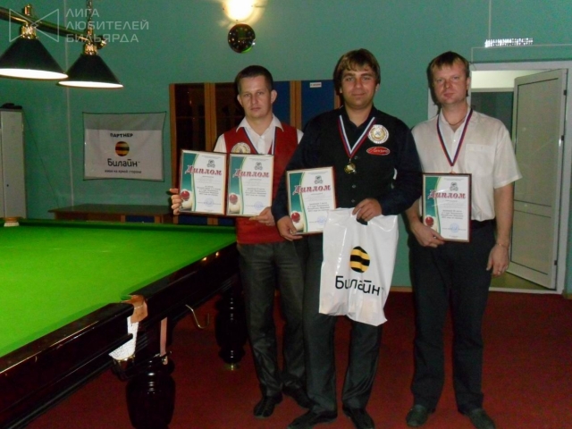 ПризерыПоздравляем Алексея со второй победой в новом для Мордовии виде бильярда! Предварительно он себя вписал в состав сборной Мордовии по снукеру на чемпионат России 2012 года.