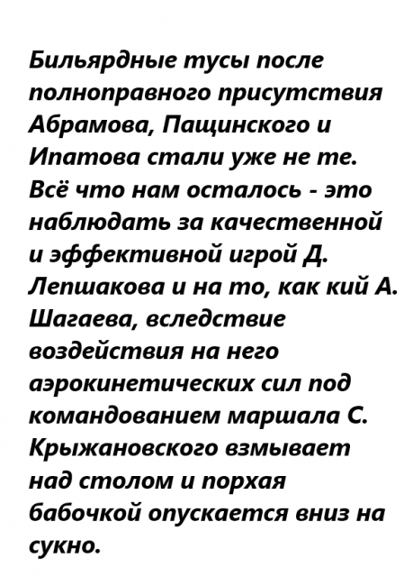 "Лепшаков, становится Чемпионом мира, по "игре всеми шарами", куда катится бильярдный мир?" А 2-е место А. Саетгалеева и недолёт целой стаи топов до лакомых мест никого не смущает?)