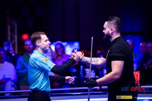 В течение предпоследнего дня US Open герои менялись один за другим. Сперва в центре внимания оказался Крис Меллинг, обыгравший Ли Ванн Кортезу 10-2, затем Эклент Качи, который одержал еще более убедительную победу не над кем-нибудь, а Йошуа Филлером. Карло Бьядо в 1/8 финала пришлось посложнее: Конрад Юшчишин никак не желал уступать, и с 2-6 сравнял счет на 7-7. Тем не менее филиппинец сумел обернуть ошибку польского игрока в две необходимые для победы партии и продолжил защиту своего прошлогоднего титула, выйдя в четвертьфинал.