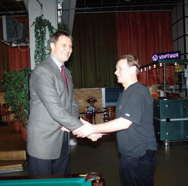 Финал оказался также очень интересным. Несмотря на итоговый счёт 3:0 в пользу Александра Беспалова, борьба длилась до последнего шара. Юрий Весельев не терял присутствия духа до окончания матча и порадовал своей игрой в этом первом для него банковском турнире. Ну а победителем турнира традиционно, как выразился председатель Совета ЛЛБ Михаил Горба, стал Александр Беспалов.