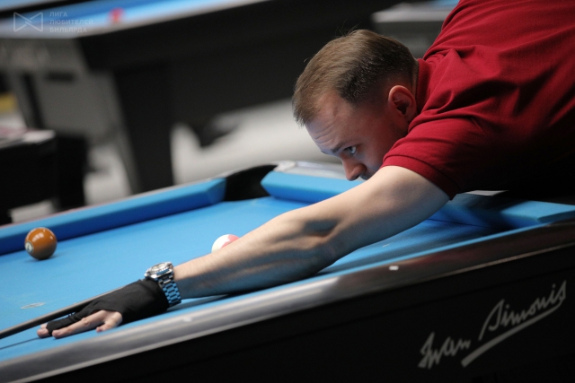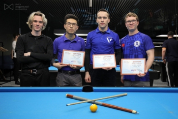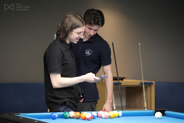 За первый стол, разыгрывая 1 место, вышли Леонид Цыцарев и Иван Соломатин. Спортсмен из Москвы решительно собрал свои полосатые шары и красиво отыгрался на последнем. Иван был в тяжелом положении — ему нельзя было сфолить, иначе победа досталась бы противнику. И вот, уверенный в себе студент Санкт-Петербурга решает бить.