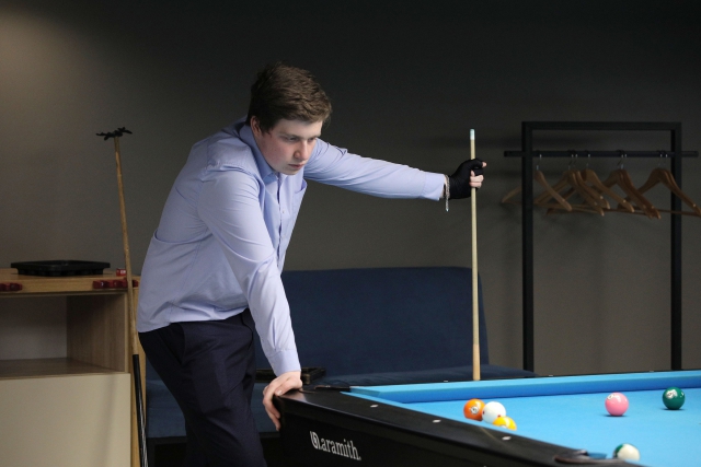 Тимофей Иглаков: «В сборную Политеха я вступил только в начале учебного года. Стараюсь регулярно тренироваться, — последние полгода уделяю бильярду по 6-8 часов в неделю.