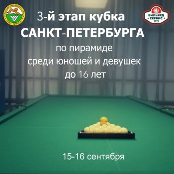 Приглашаем на 3-й этап Кубка Санкт-Петербурга по пирамиде среди юношей и девушек до 16 лет