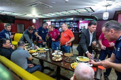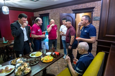 Традиционный легкий фуршет перед игрой, фото и видео в неофициальной обстановке и за «рабочие» столы.