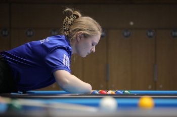 3 место между собой разыграли Полина Тарасенок и Эдгар Партнов. В конце партии у Эдгара остался всего 1 шар на столе, в то время, как у Полины было еще 2 шара. И вот, студент ГУАПа приготовился зарезать восьмерку в самую коварную лузу — среднюю. В целом, спортсмена такого уровня не смутило подобное затруднение, он с легкостью забил черный шар и забрал победу себе.