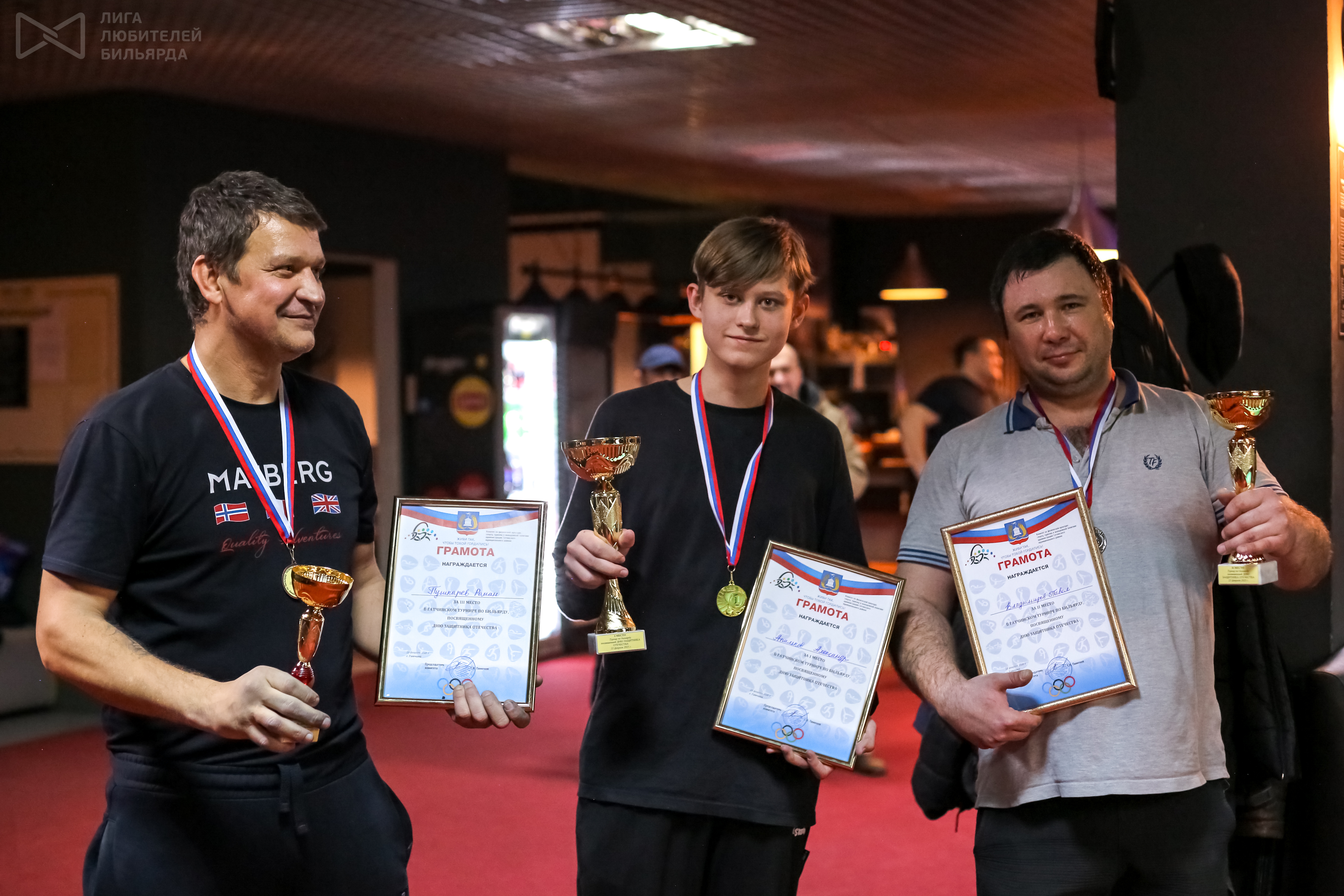 Гатчина 2025. Турнир в честь 23 февраля в БК «Pool & bar» по пирамиде 26.02.2025 - 09:04 Автор: нелли Турнир: Гатчина 2025. Турнир в честь 23 февраля в БК «Pool & bar» по пирамиде
