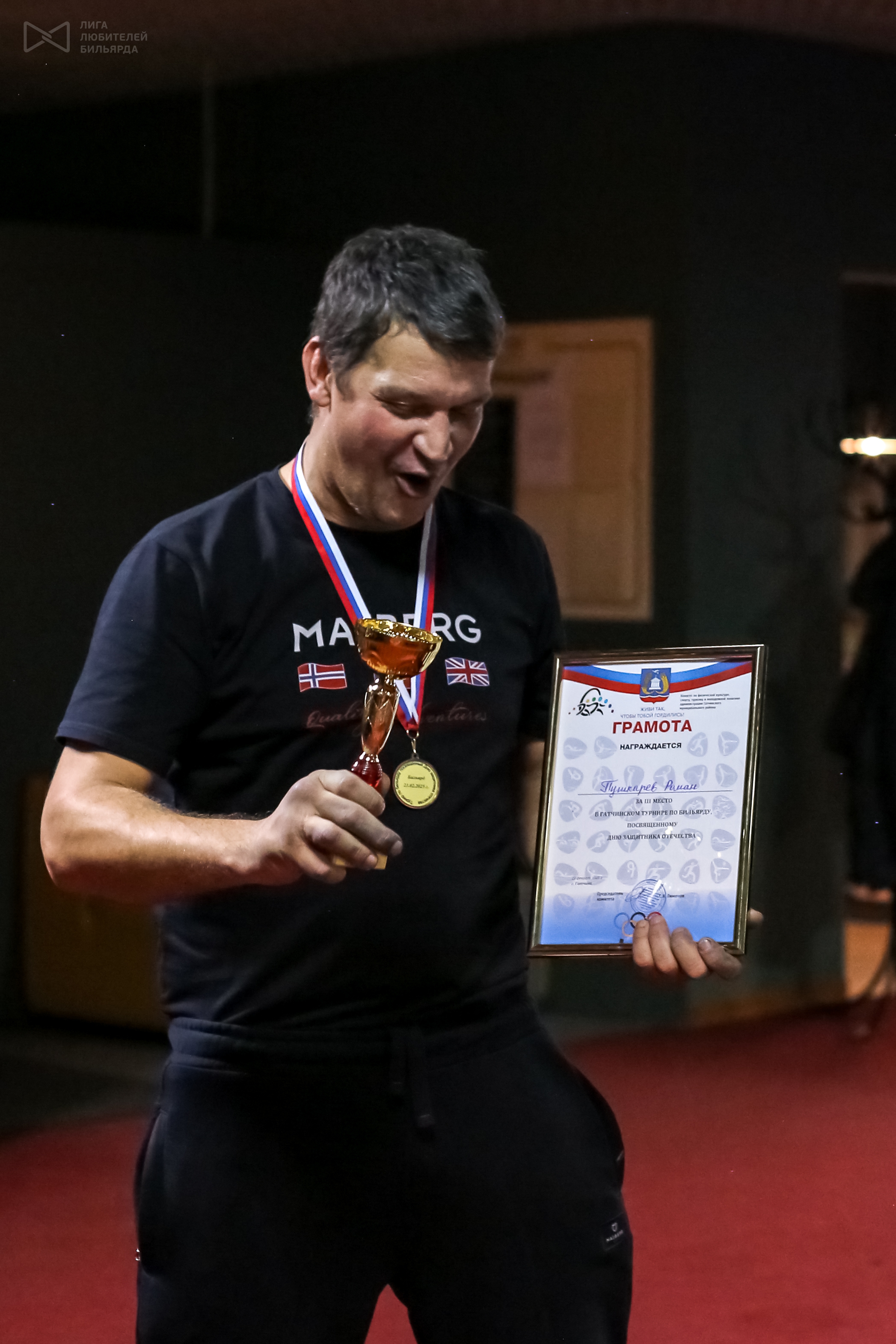 Гатчина 2025. Турнир в честь 23 февраля в БК «Pool & bar» по пирамиде 26.02.2025 - 09:04 Автор: нелли Турнир: Гатчина 2025. Турнир в честь 23 февраля в БК «Pool & bar» по пирамиде