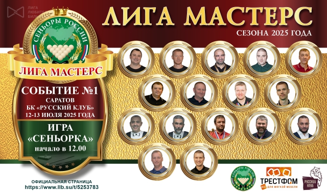 С 12 по 20 июля всех поклонников русского бильярда Саратовской области и наших зрителей трансляций ждет интереснейшее действо, объединенное в своеобразный фестиваль сеньорского бильярда на саратовской земле, который будет включать в себя первый рейтинговый тур Лиги Мастерс и второй в этом сезоне Всероссийский кубок с призовым фондом 1 млн. рублей!