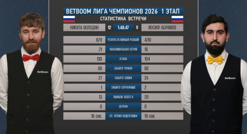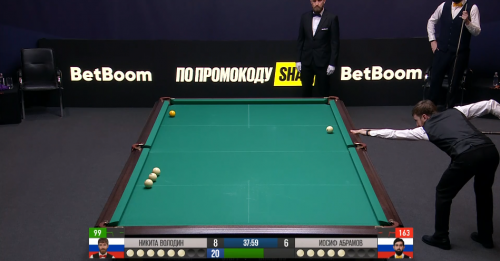 И тут — случайный шар после разбоя падает у Иосифа. Та мелочь, от которой зависит судьба матчей. Серия доходит до шестнадцати, счёт снова равный. Володин продолжает разбивать успешно, но снова — невероятная ошибка на восьмом шаре свояком! Абрамов пощадил, промахнувшись в ответ. Теперь по две ошибки у каждого — зеркало равенства.