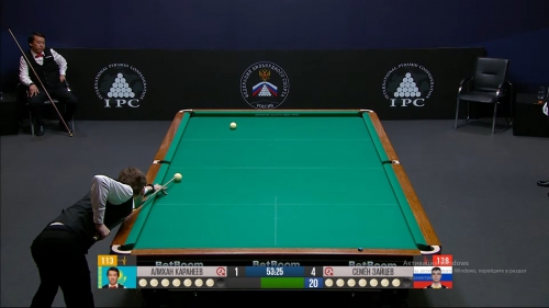 Этот момент стал переломным. Поймав кураж, Семен выдал образцовый разбой и тут же оформил партию «с кия», обеспечив себе комфортный отрыв. Первый же нерезультативный разбой в исполнении Каранеева лишь подчеркнул его главную проблему в этот вечер — катастрофическое количество ошибок на чужих шарах. Семен давал шансы, оставлял «форточки», но Алихан ими не пользовался. На перерыв игроки ушли при счете 4:1 в пользу российского мастера.