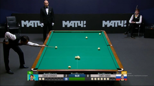 К середине второго игрового отрезка интрига окончательно испарилась, уступив место чистому искусству в исполнении Зайцева. Семен в третий раз за матч решил исход партии тяжелым «свояком», не давая оппоненту даже глотка воздуха. Цифры 7:2 за полчаса до финального свистка превратили остаток матча в бенефис россиянина. Финальным аккордом перед вторым перерывом стала еще одна партия «с кия» — 8:2.