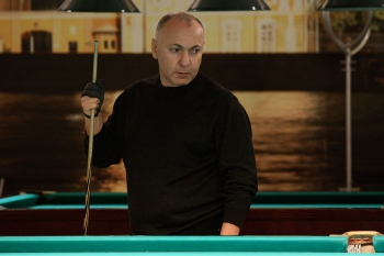 В этот воскресный день один из лучших клубов ЛЛБ принимал у себя ни много ни мало первый в этом сезоне (и в своей короткой пока истории) турнир Лиги любителей бильярда по классической пирамиде. Двадцать восемь участников, помимо уже традиционного призового фонда, разыгрывали приз от спонсора этого турнира — You do not have access to view this node — сертификат на ужин на две персоны.Оба игрока на пути к решающему матчу не избежали поражений, причем наш известный судья и не менее выдающийся игрок оступился в своем первом же на турнире матче, вчистую уступив Евгению Прусаку. Впрочем, Вячеслава такой поворот событий не выбил из колеи, и в дальнейшем его игра смотрелась очень уверенно. А в полуфинале и финале он и вовсе поймал кураж, дав своим соперникам набрать лишь 20 очков на двоих. Очевидно, сказалось и влияние родного клуба, за столами которого Слава, по его собственным словам, кладет все, что можно.