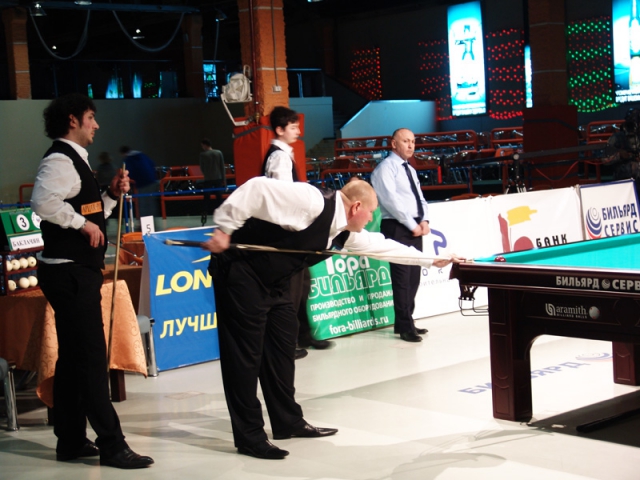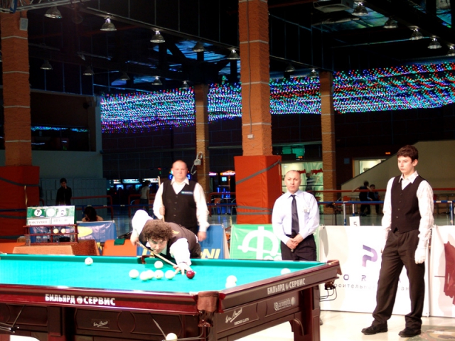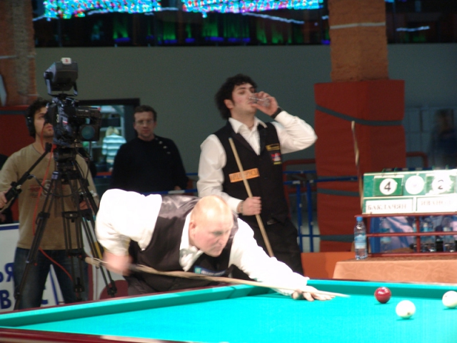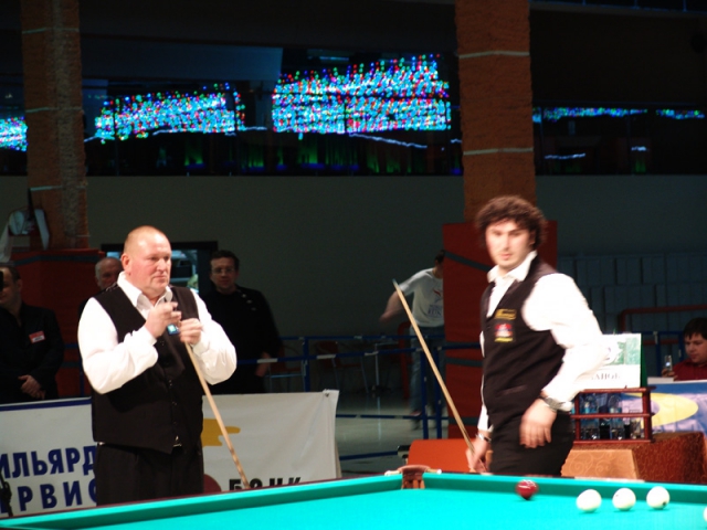 Вчера в клубе "Лидер" состоялся первый четвертьфинальный матч турнира "Великолепная восьмёрка" между Арманом Баклачяном и Валерием Ивановым. Первый после долгого перерыва матч в этом клубе отличался хорошей организацией, хоть сама игра была и не столь увлекательной. Без особого труда Арман обыграл противника со счётом 9:2. Его следующим соперником в турнире станет победитель матча между Йони Ахола и Юрием Пащинским.