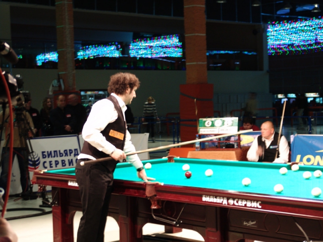 Восьмая партия оказалась самой короткой - Баклачян с разбоя забил восемь шаров за 2 минуты 10 секунд. Первую партию он также собрал с кия после разбоя, но потратил на это на 20 секунд больше. Самой длинной партией оказалась третья, которая длилась 14 минут 25 секунд (чуть-чуть не хватило до предела). Она закончилась 8:7 в пользу Баклачяна.