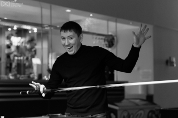 В финале ничего легкого не ждало. Хотя в первой партии шел все время на полкорпуса впереди, но довел до «контры», получив «дураком» восьмого шара. (Играли кстати «на равных», но лишь потому, что Александр за первый день «наработал» на единичку, а я весь турнир был ею на «самовыдвижении»). Две следующие партии, поняв, что Александр – «серийный убийца», поджидающий зевак, позволяющих себе малейшую небрежность, мне удалось собраться и тактически переиграть соперника, в т.ч. в одной партии – «всухую», буквально выцепляя из позиции «все по бортам» по одному – два шара.