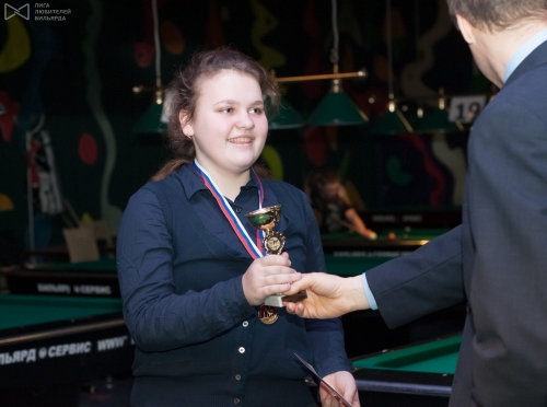 Несмотря на стабильно постоянный состав, уровень их игры оставляет желать лучшего. Пришлось вводить лимит времени на встречу - 1 час, и следует отметить,что в каждой дисциплине от 5 до 12 встреч не укладывались в этот лимит времени, что свидетельствует о их недостаточной технической подготовке. Фаворитами Первенства были наиболее опытные участницы: Полина Напалкова, Ольга Устинова и Алина Петрова. Об этом свидетельствуют и результаты: Полина заняла два первых места и одно второе, Ольга - одно первое, одно второе и два третьих места, а у Алины - одно первое и два третьих места. В отсутствии на дисциплине 14+1 Полины Напалковой в спор за награды включились Елена Павлова и Екатерина Кузьмина. Елена заняла второе место, а Екатерина - третье. Достаточно хорошо выступила Надежда Дудко, заняв 3-е место в пул-10 и 2-е место в пул-9. Приятно удивила новичок турнира и всех пуловских "тусовок" Дарья Долгова. Она, к сожалению, приняла участие только в пул-9, зато заняла здесь призовое 3-е место, сделав себе подарок - в этот день ей исполнилось 11 лет!