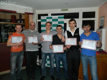 Наступление теплых дней весны и плотный график турниров в Саранске отразился на массовости парных турниров — на этой недели пришли только 4 команды. Но турнир состоялся. Команды приятно провели время за увлекательной игрой в «невку» до 5-ти побед по «олимпийской» системе с игрой за 3-е место. Три сильнейшие команды были награждены дипломами. Финалисты разыграли фонд турнира. А присутствующий хозяин клуба наградил 3-е и 4-е места вкусным пивом собственной пивоварни и бесплатным абонементом на бильярд.