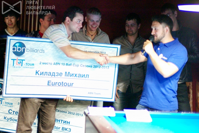 В первый же день прошла церемония награждения призеров сезона. Турниры ABN примечательны не только призовым фондом, достойным уровня профессиональных состязаний. Главные трофеи сезона для российского игрока поистине беспрецедентны - это путевки на большие профессиональные турниры, такие как Кубок Кремля, Евротур и Derby City Classic! За возможность «сказку сделать былью» - отдельная благодарность спонсору серии, туристической компании TLT-Tour.
