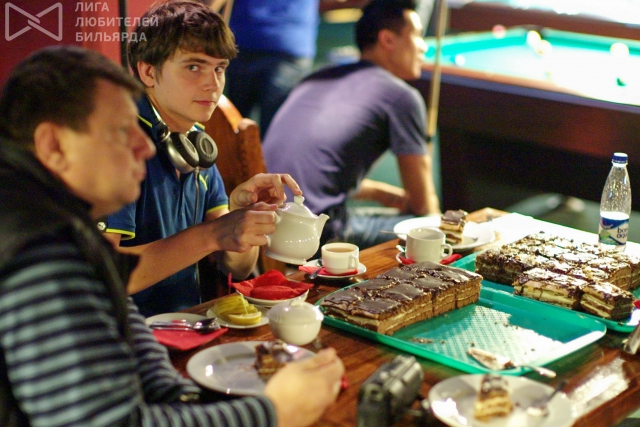 Разумеется, организаторы мероприятия - группа энтузиастов бильярда ABNbilliards - не собирались снижать обороты, и приготовили для участников финального турнира множество вкусных бонусов. В том числе вкусных в буквальном смысле: игрокам пришлось поднапрячься, чтобы справиться с парой внушительного размера тортов - угощением от клуба «Доберман».